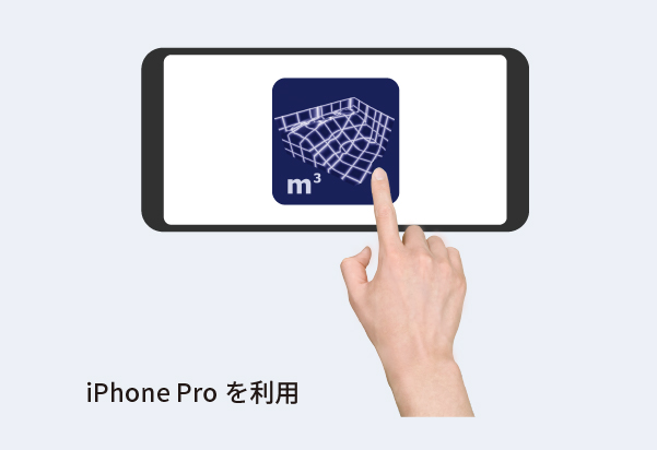 - スマホカメラで対象物全体をまんべんなく撮影し立体形状 を計測します。