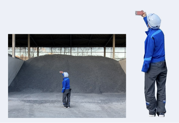 GENBA-ScanはLiDAR機能を使用し資材の形状を正確に把握できるためならし作業をする必要がありません。