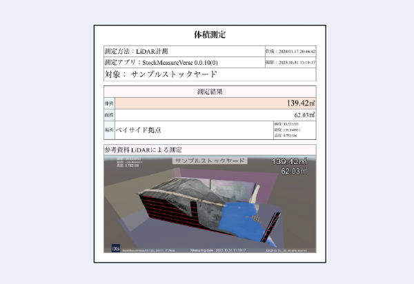 - 計測した立体形状の中で体積を測定したい範囲を指定する と瞬時に体積が算出されます。