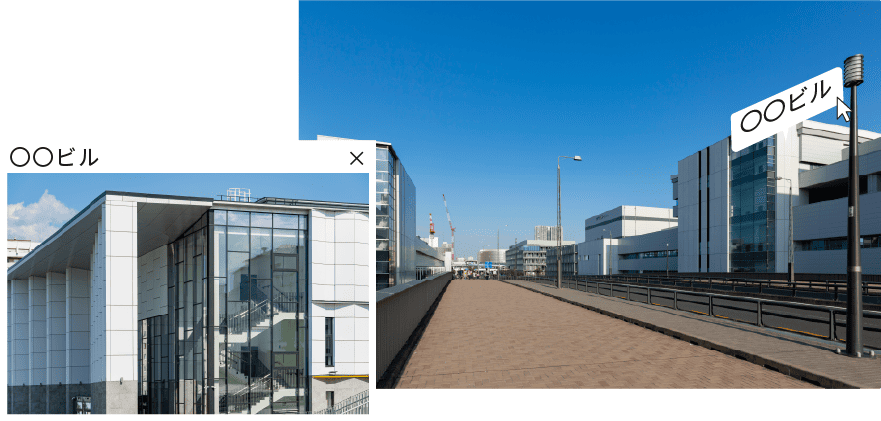 360°ビュー内の任意の位置に、画像・注釈・URLといった付属情報を付加することができ効率的に記録・情報共有が行えます。