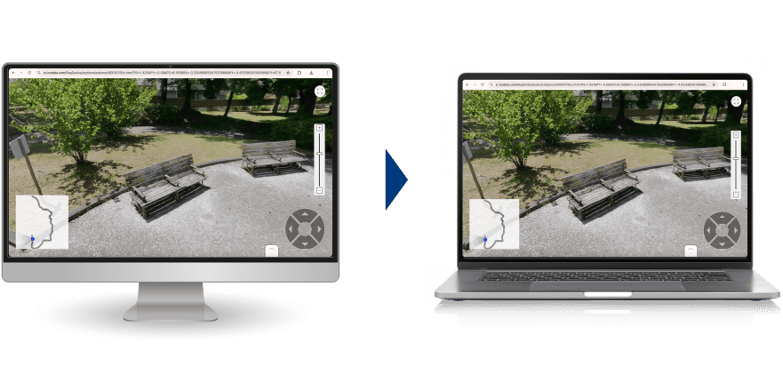 Webアプリ上で現場を歩き回る感覚で360°ビューを閲覧できます。