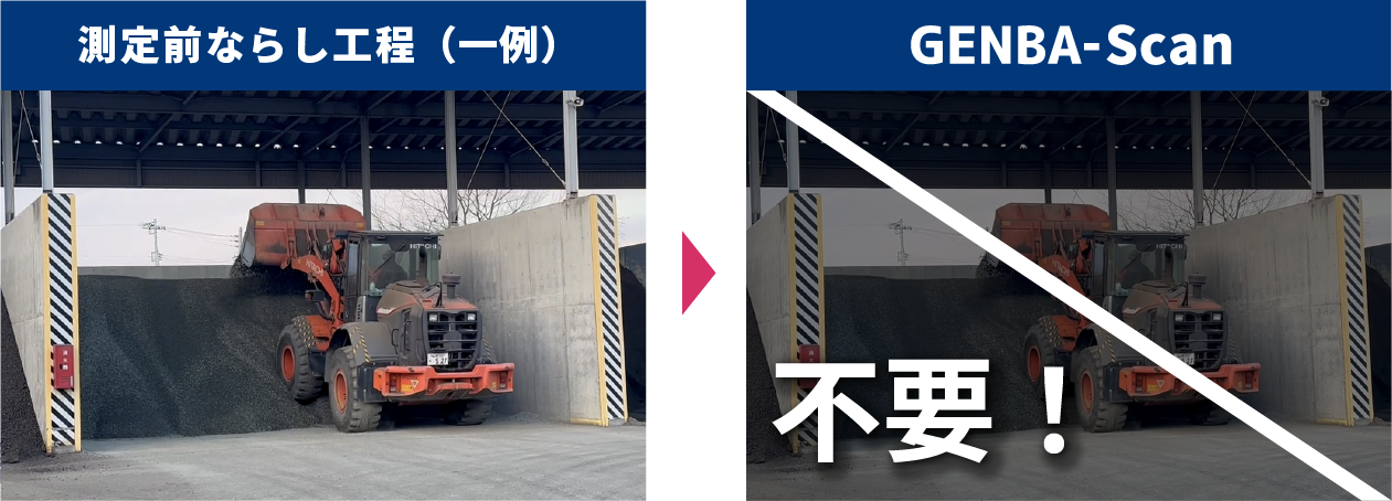 従来の計測方式では、誤差を減らすため、測定前に重機によるならし作業を行う必要がありました。