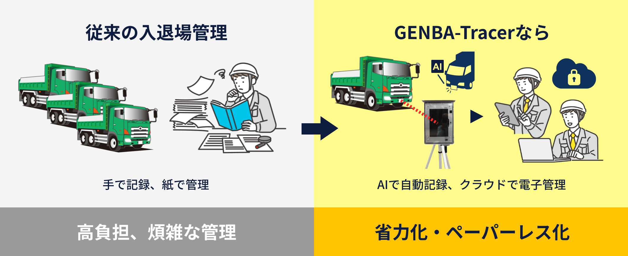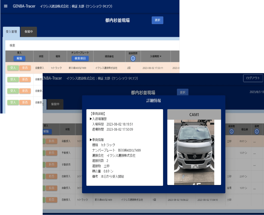 GENBA-Tracerは、現場の車両入退場管理に必要な機能を備えており、それでいて