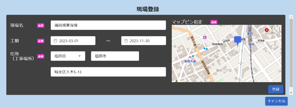 A:可能です。基本的には、1現場につき1サイトですが、工区が複数分かれるなどで、工区ごとに管理したい場合は、複数端末×複数WEBサイトの運用も可能です(要見積もり)