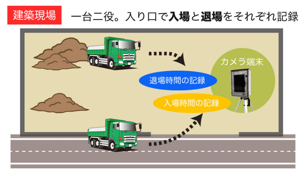 設置スペースの少ない都市部の工事では、1台2役で入退場を管理する使い方がお勧めです。